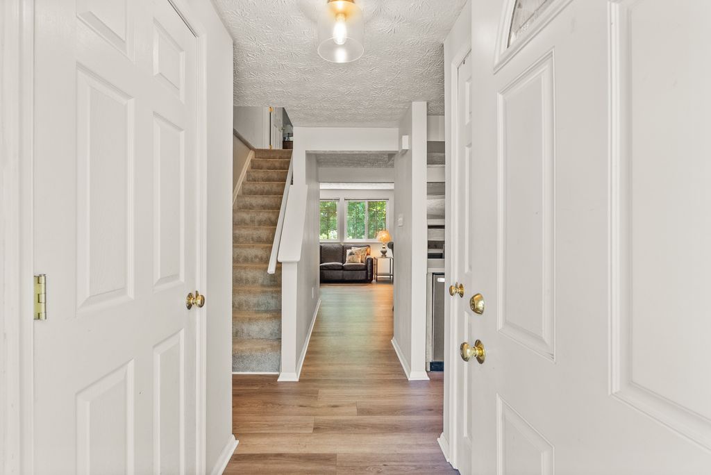 Welcome to this lovely end-unit townhome in Springfield! Tucked away in Newington Forest, this home sits on a GREAT lot backing to trees and comes equipped with a huge backyard! Spanning just under 1400 square feet across 3 levels, the property offers so much value in the heart of Fairfax County. The main level features a kitchen with plenty of countertop and cabinet space, including a large built-in pantry. You've also got beautiful stainless steel appliances! The kitchen opens up seamlessly to a quaint dining area and lovely main living area with a pretty light brick fireplace. Upstairs you've got 2 bedrooms and 1 full bathroom, including a spacious primary suite with a full-size walk-in closet, plus a second closet! The basement offers a large, open recreation space, half bathroom, storage under the stairs, and laundry room with extra storage space! You can also WALK-OUT to the oversized backyard on this one - enjoy a lovely deck space perfect for grilling and chilling, two storage shed spaces, large green space, and the privacy provided by the beautiful mature trees! The icing on the cake is the location - situated in the ever popular Newington Forest community, you'll have easy access to commuter route, metro stops, all of Fairfax County's shopping and restaurants, and this one feeds to the South County High School pyramid! You've also got access to the Newington Forest amenities - enjoy a swimming pool, sports courts, walking trails, and more! This home is an unbelievable value in Springfield, so be sure to come see it for yourself!